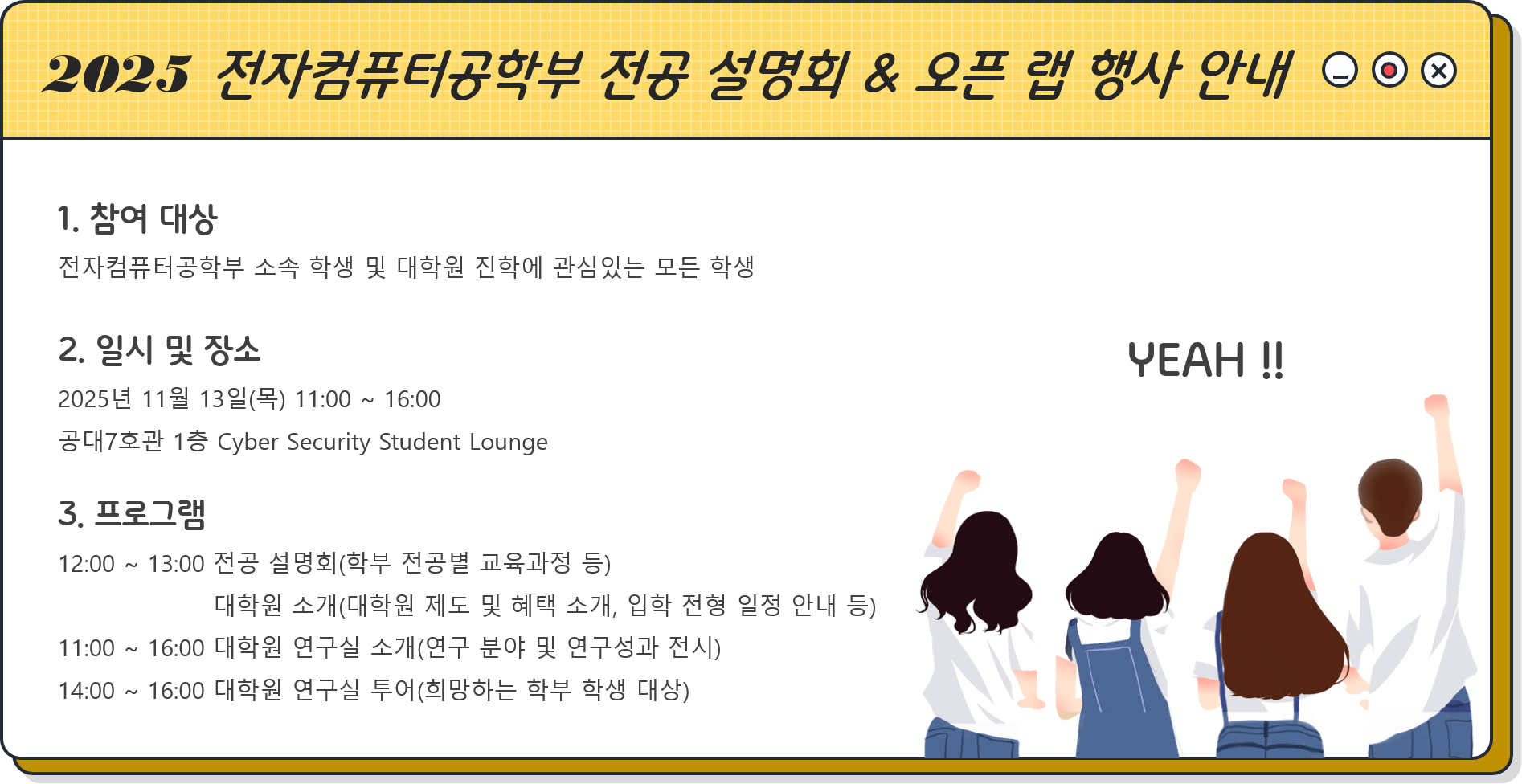 2025 전자컴퓨터공학부 전공설명회 & 오픈 랩 행사 안내(11/13 11:00)